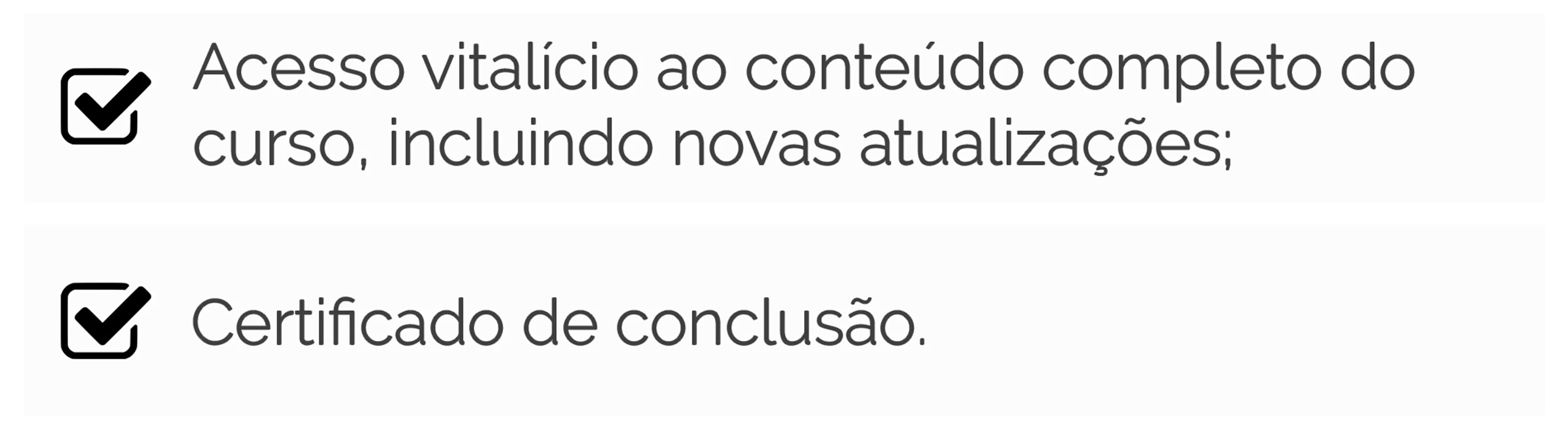 Acesso vitalício ao conteúdo completo do curso, incluindo novas atualizações;